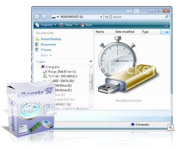 EBooster é um aplicativo que permite a utilização de um drive adicional (memória Flash ou HD) como uma camada adicional de otimização de performance do cache para o Windows XP, 2000 ou 2003. Não é mais necessário comprar a atualização para o Microsoft Windows Vista para desfrutar dos benefícios da tecnologia Vista ReadyBoost. Com eBooster, o tempo de carregamento de seu sistema operacional, bem como dos aplicativos, é muito mais rápido, graças ao mecanismo de cacheamento inteligente.