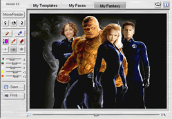 MyFantasyMaker é um programa específico para recortar um rosto de uma foto, da que você quiser, e colocá-la em outra fotografia, criando um efeito divertido .Até aqui, tudo certo. MyFantasyMaker lhe deixa fazer todo o processo passo a passo. Primeiro escolha a imagem de fundo, depois a cara que deseja adicionar e, finalmente, as últimas pinceladas em "sua fantasia", que é como chamam a criação final.