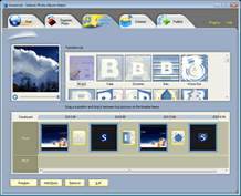 Photo Album Maker possui diversos efeitos de transição, como o sombras, descolorir, dissolver e muitos outros. Você pode editar as fotos, inserir sua música favorita e selecione estilo adequado para atender às suas fotos. Com interface fácil de utilizar, um passo-a-passo, assim até iniciantes podem fazer uma álbum em questão de minutos.