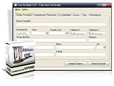 Curriculum Vitae Generator cria currículos de forma bem fácil, apenas preencha os campos necessários que o seu Curriculum Vitae estará pronto. Ele também permite inclusão de foto 3×4 colorida. Esse aplicativo é muito utilizado em lanhouses, vale a pena conferir.